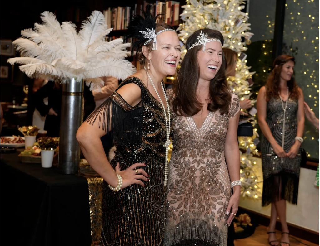 Adrienne Raptis, from left, and Melissa Smiles pose for a photo during the Raptis Rare Books 100th anniversary celebration of The Great Gatsby December 19, 2025 in Palm Beach. During the celebration guests were given the chance to see the store’s inscribed Great Gatsby first edition in its original dust jacket created by painter and graphic designer Francis Cugat in 1924. Guests were encouraged to wear 1920’s fashion for the event.