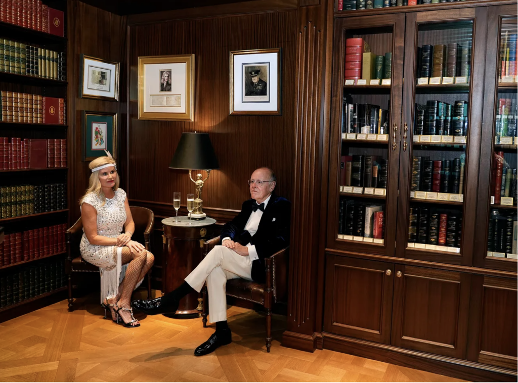 Beth and Chuck Bushong attend a 100th anniversary celebration of The Great Gatsby December 19, 2025 in Palm Beach. During the celebration guests were given the chance to see the store’s inscribed Great Gatsby first edition in its original dust jacket created by painter and graphic designer Francis Cugat in 1924. Guests were encouraged to wear 1920’s fashion for the event.