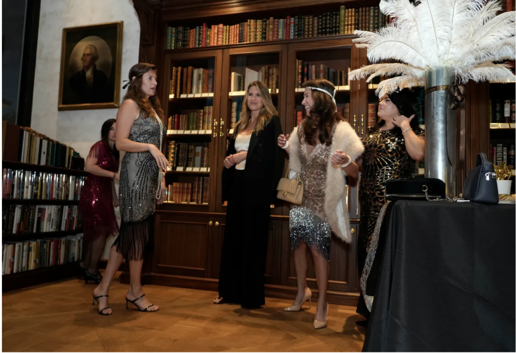 Over 100 people attend the 100th anniversary celebration of The Great Gatsby at Raptis Rare Books December 19, 2025 in Palm Beach. During the celebration guests were given the chance to see the store’s inscribed Great Gatsby first edition in its original dust jacket created by painter and graphic designer Francis Cugat in 1924. Guests were encouraged to wear 1920’s fashion for the event.