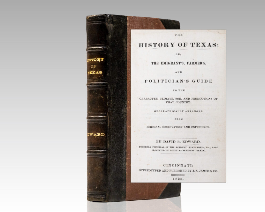 First edition of this scarce pro-Jackson biography published just after he won the 1828 presidential election, with the scarce folding copper-engraved, hand-colored map of the United States. Octavo, bound in three quarter maroon leather over marbled boards with gilt titles and tooling to the spine, marbled endpapers, illustrated with frontispiece portrait, engraved title, four plates, threeContinue reading "The Jackson Wreath, or a National Souvenir."