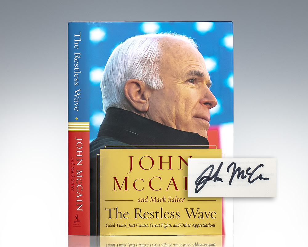 First edition of this political memoir from Senator McCain, an American hero who reflects on his life and what matters most. Octavo, original boards. Boldly signed by John McCain on the title page. Fine in a fine dust jacket. Jacket design by Jackie Seow. Rare and desirable signed as this memoir was published in MayContinue reading "The Restless Wave: Good Times, Just Causes, Great Fights, and Other Appreciations."