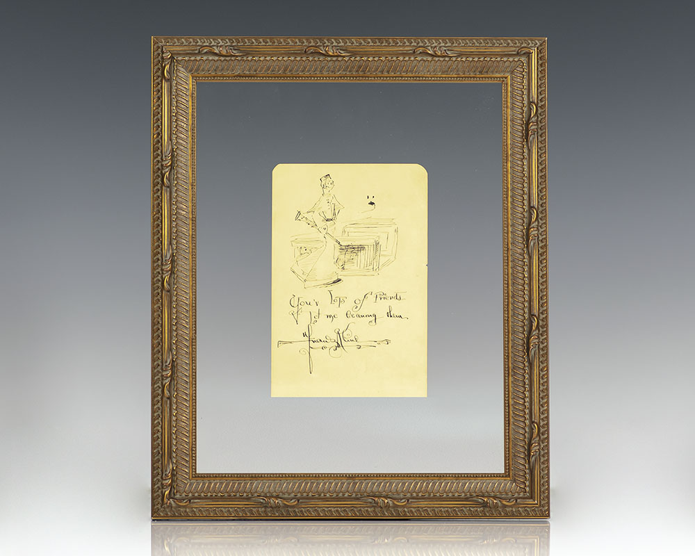 Rare original sketch signed and inscribed by American painter Franz Kline. One page, with pen and ink caricature sketches on both the recto and verso. Kline has drawn five caricatures on the recto which he has signed and titled “The Boyfriend”. On the verso, he has drawn a single figure and inscribed the work, “You’veContinue reading "Franz Kline “The Boy Friend” Original Signed Sketch."