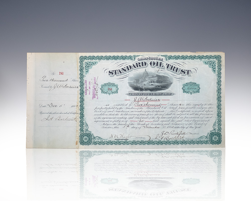Rare original Utah Southern Railroad Company uncashed check signed by Brigham Young. Partially printed document signed “Brigham Young” as President and “George Swan” as Secretary, United States Internal Revenue two cents stamp, dated April 8th, 1872. Written to the order of $125.25 from the treasurer of the UCRB. In near fine condition with toning andContinue reading "Brigham Young Signed Utah Southern Railroad Company Check."