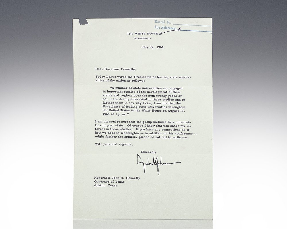 Rare autograph letter signed by Scottish novelist and playwright J.M. Barrie. Duodecimo, one page on Adelphi Terrace House stationery, dated 13 November 1911. The letter is to a gentleman regarding signing some papers of one of the author’s plays. In near fine condition, with light toning and a light vertical crease. The piece measures 5.5Continue reading "J.M. Barrie Autograph Letter Signed."