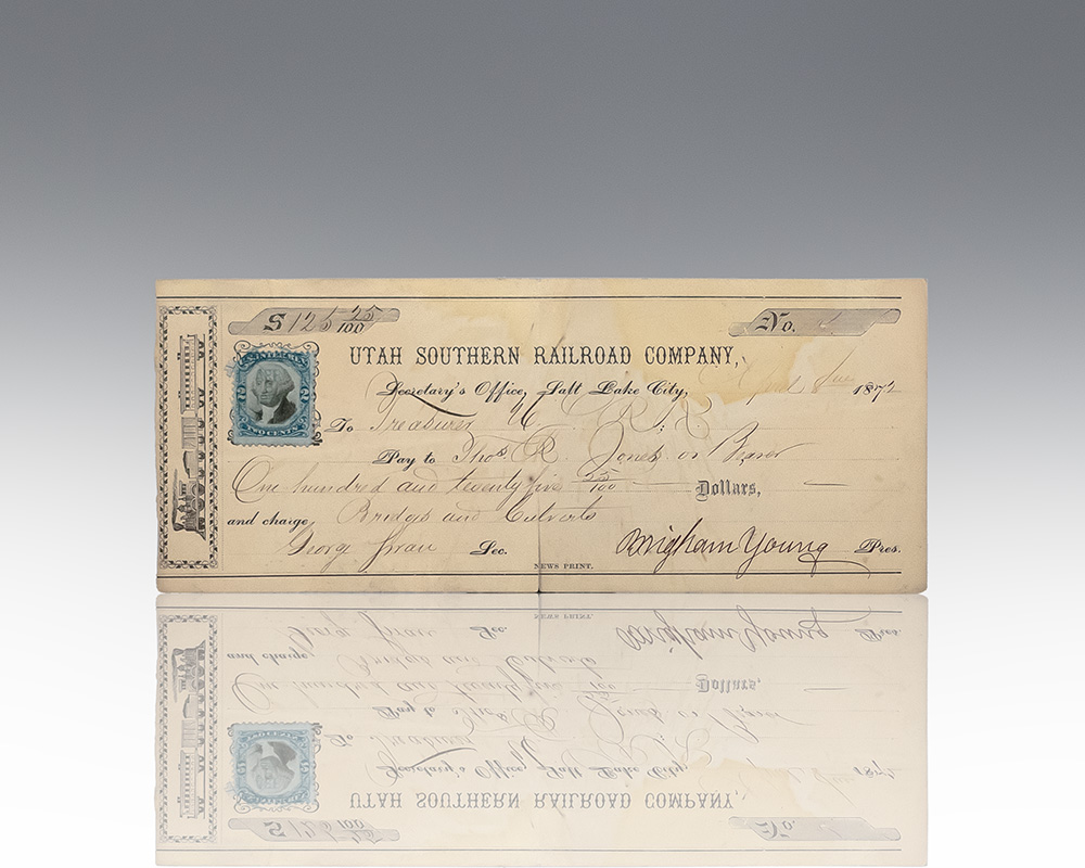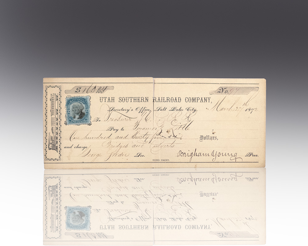 Brigham Young Signed Utah Southern Railroad Company Check.
