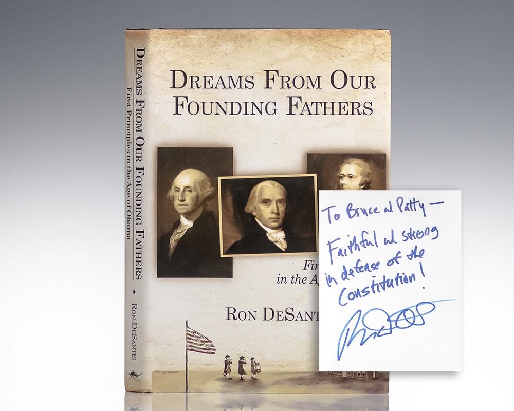 First edition of DeSantis’ first book. Octavo, original half cloth. Presentation copy, inscribed by the author on the front free endpaper, “To Bruce and Patty- Faithful and strong in defense of the Constitution! Ron DeSantis.” Near fine in a near fine dust jacket. Jacket design by Mary Fisher Design.