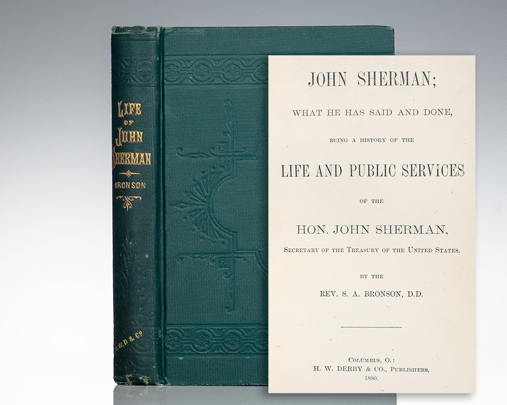 First edition of this biographical chronology of the life of United States Secretary of the Treasury John Sherman; from the library of William Tecumseh Sherman. Small octavo, original publisher’s cloth with gilt titles to the spine, elaborately stamped in blind to the front and rear panels, frontispiece portrait of John Sherman. General William Tecumseh ShermanContinue reading "John Sherman: What He Has Said and Done: Being a History of the Life and Public Services of the Hon. John Sherman, Secretary of the Treasury of the United States."