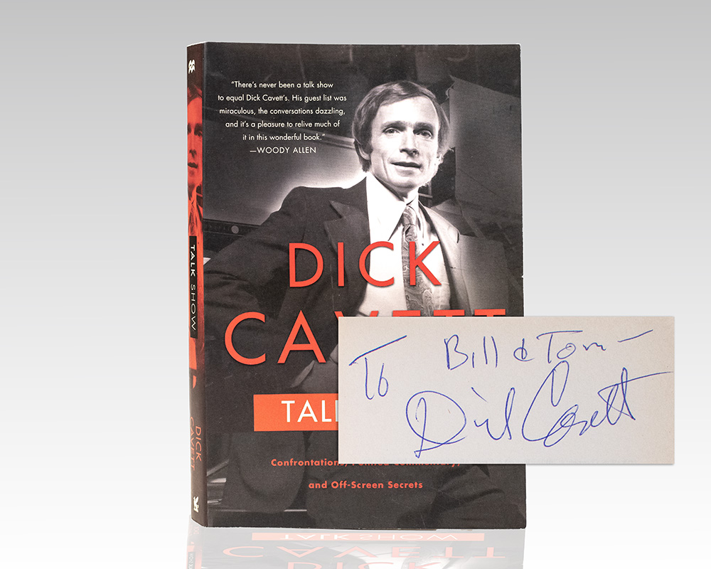 First paperback edition of this collection of essays by legendary talk show host Dick Cavett. Octavo, original pictorial wrappers. Association copy, inscribed by the author on the title page, “To Bill & Tom – Dick Cavett.”  The recipient, Bill Zwecker, was a longtime entertainment and celebrity journalist. A Chicago native and second-generation newspaper star (hisContinue reading "Talk Show: Confrontations, Pointed Commentary, and Off-Screen Secrets."
