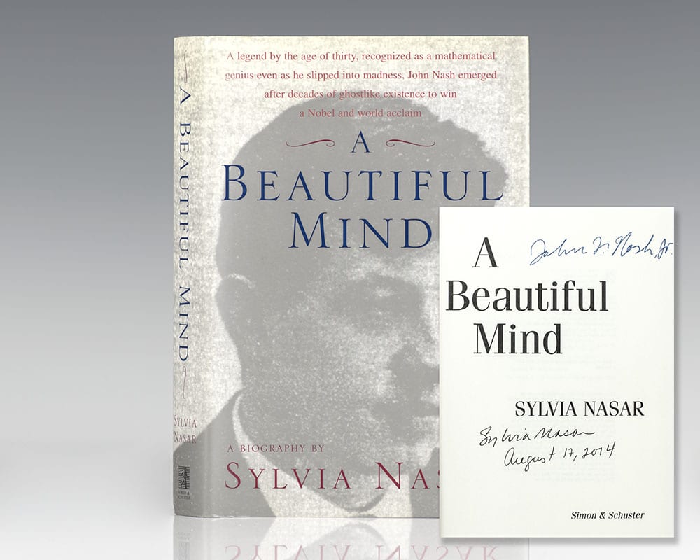 First edition of this work, basis for the Academy award-winning film. Octavo, original cloth, illustrated. Boldly signed by Sylvia Nasar and additionally signed by Nobel Laureate and subject John F. Nash on the title page. Fine in a fine dust jacket. Jacket design by Timothy Hsu. Rare and desirable signed by both Naser and Nash.