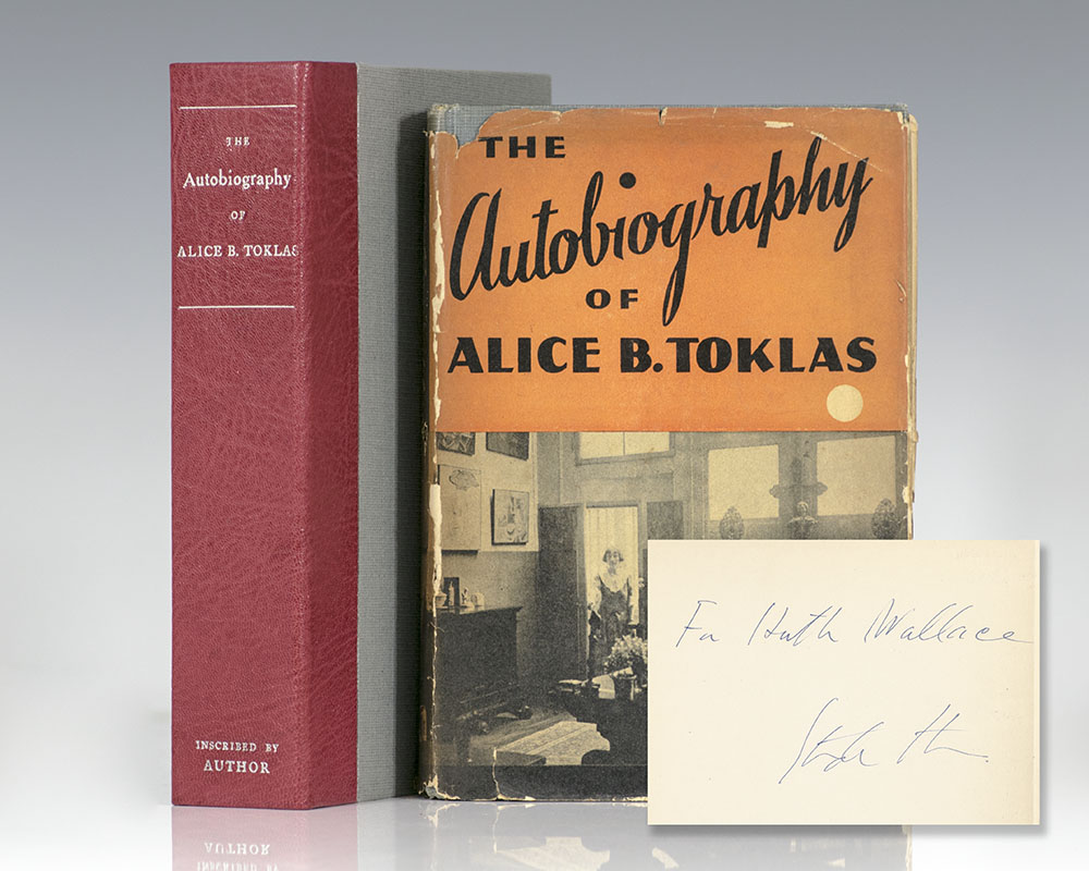First edition of Gertrude Stein’s most famous work; one of the richest biographies ever written. Octavo, original cloth, illustrated from photographs. Inscribed by Gertrude Stein on the front free endpaper. Near fine in a very good dust jacket with some wear and tear. Housed in a custom half morocco clamshell box. Signed first editions areContinue reading "The Autobiography of Alice B. Toklas."