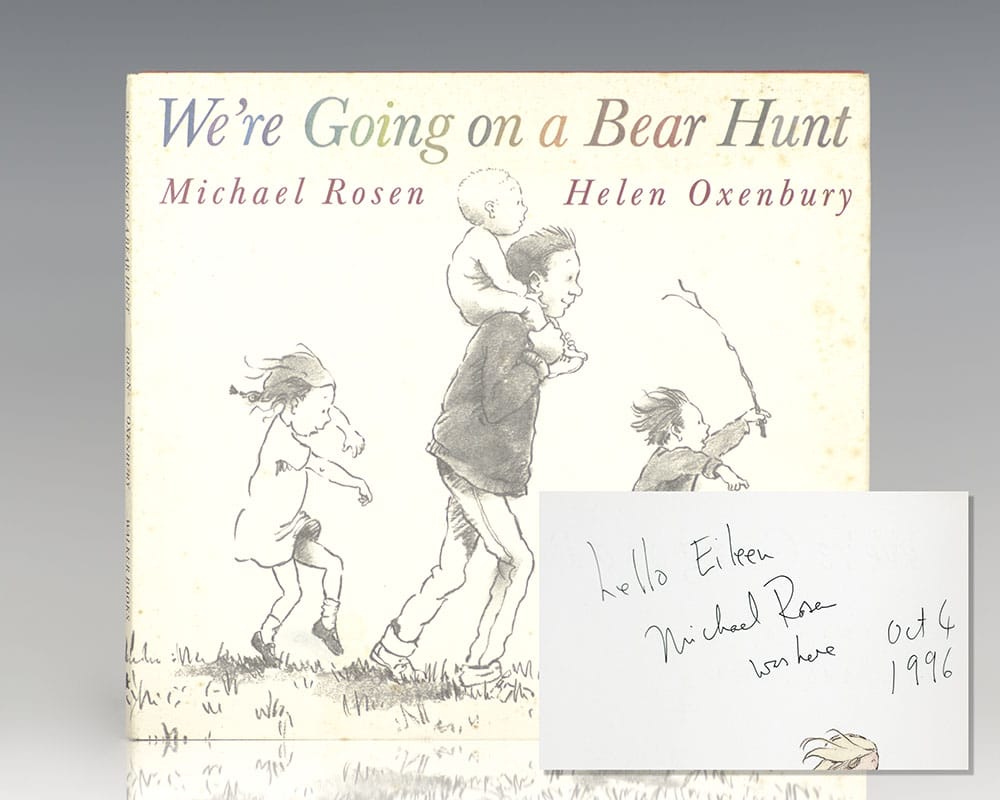 First edition of Michael Rosen’s children’s classic. Quarto, original illustrated boards, with illustrations by Quentin Blake. Signed and dated by the author on the front free endpaper, “Michael Rosen 12/10/85.” In near fine condition, small name.