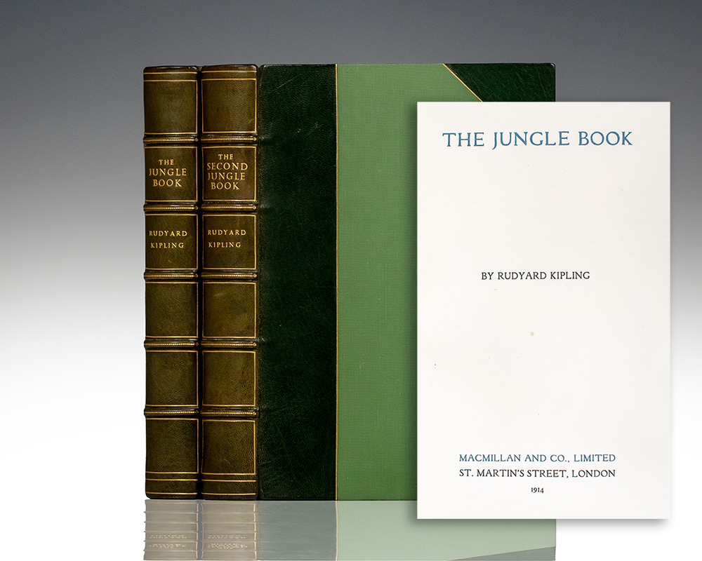 The Bombay editions of both volumes of The Jungle Book. Octavo, two volumes, bound in three-quarters morocco by Morell with gilt titles to the spine in six compartments within raised gilt bands, top edge gilt, marbled endpapers. One of 1050 copies. In near fine condition. A sharp example.