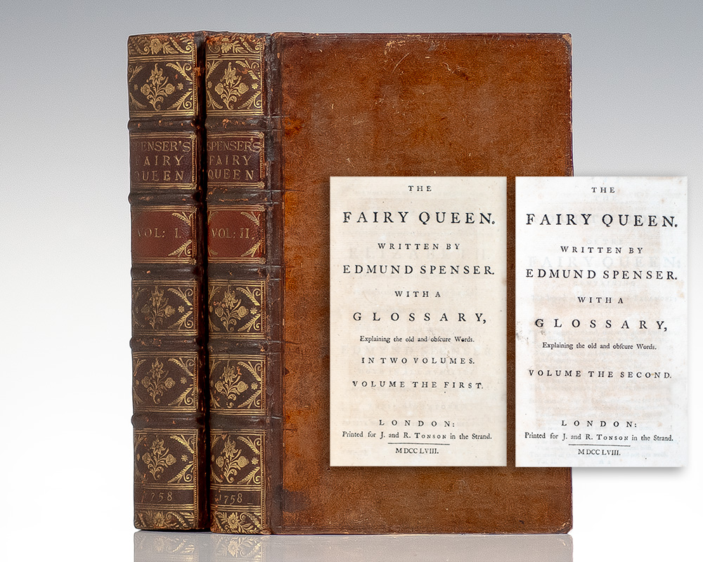 Finely bound edition of this classic work. Octavo, 2 volumes, bound in full calf, gilt titles and tooling to the spine, raised bands, with nine full page engraved plates by Louis du Geurnier. In very good condition, with the ownership signature on title page of a W. A. Watson and occasional marginalia, rebacked. A veryContinue reading "The Fairy Queen. With a Glossary, Explaining the Old and Obscure Words."