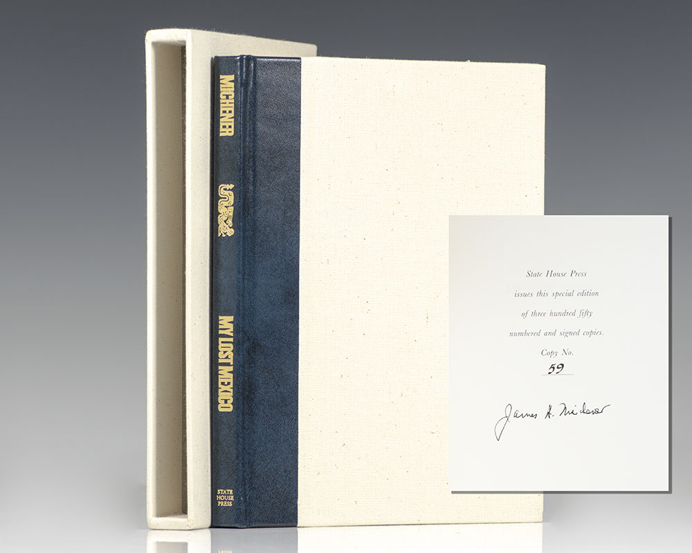 Signed limited edition of this novel by the award-winning author, one of 350 numbered copies, this is number 59. Octavo, original half cloth, with illustrations by the author. Signed by James A. Michener. Fine in a fine slipcase.