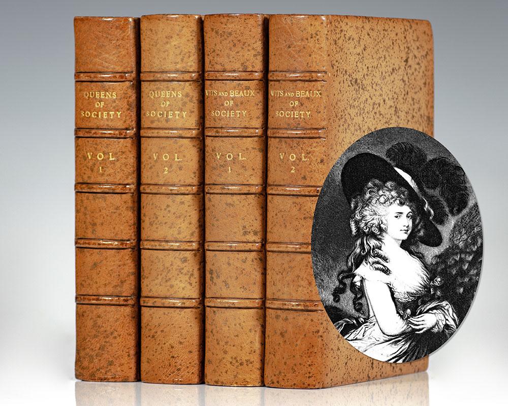 Large paper edition, one of 250 numbered copies of The Queens of Society and Beaux of Society. Octavo, 4 volumes, bound in full calf, gilt titles to the spine, raised bands, top edge gilt, inner dentelles, marbled endpapers, illustrated. In fine condition.