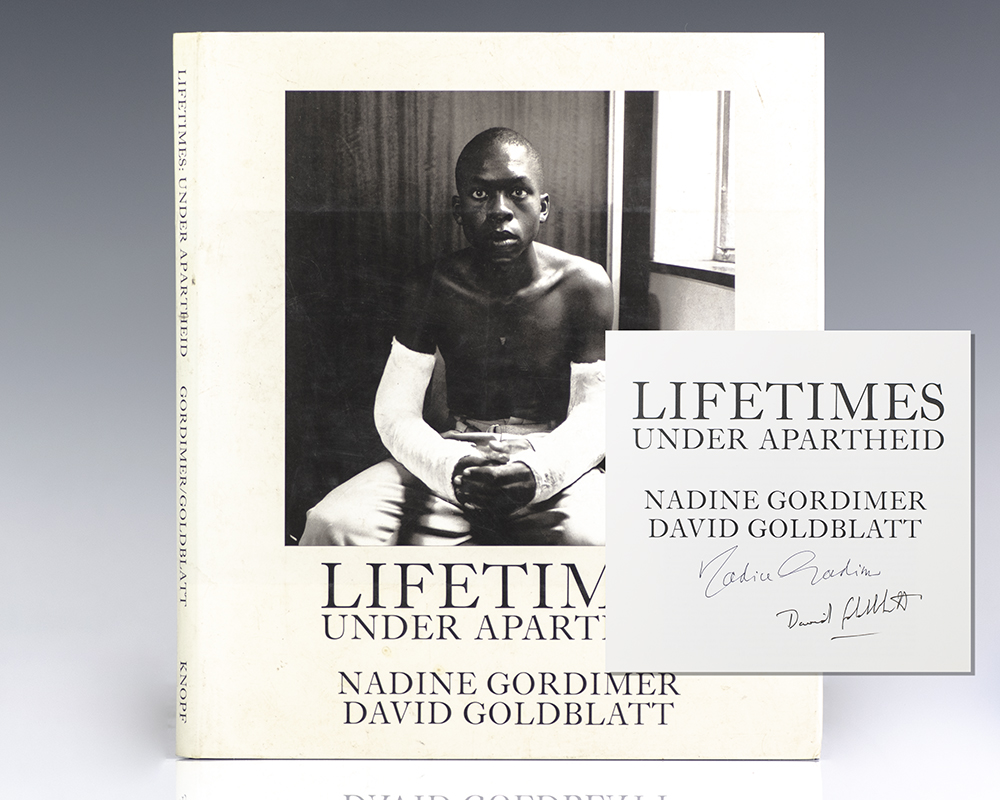 First edition of the photographer’s second collaboration with novelist Nadine Gordimer. Quarto, original cloth, illustrated throughout. Boldly signed by both Nadine Gordimer and David Goldblatt on the title page. Very good in a very good dust jacket.