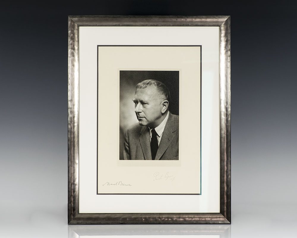 Black and White photograph taken by Pach Brothers of architect Marcel Breuer. Boldly signed by Breuer on the lower left. In fine condition. Double matted and framed. The entire piece measures 16.8 inches by 21 inches. Rare and desirable.
