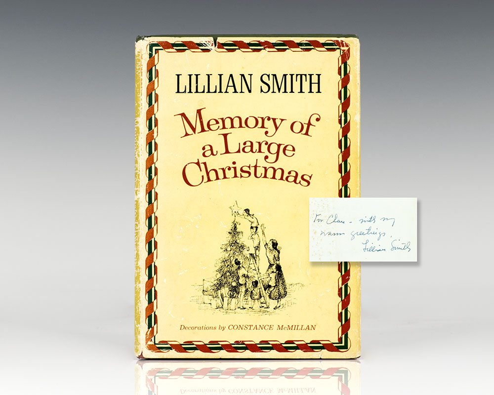 First edition of this “beautifully written book which should be read by families at Christmas time as Dickens’ Christmas Carol used to be” (The New York Times Book Review). Octavo, original cloth. Presentation copy, inscribed by the author on the front free endpaper, “For Clare- with my warm greetings, Lillian Smith.” Decorations by Constance McMillan. Very goodContinue reading "Memory of a Large Christmas."