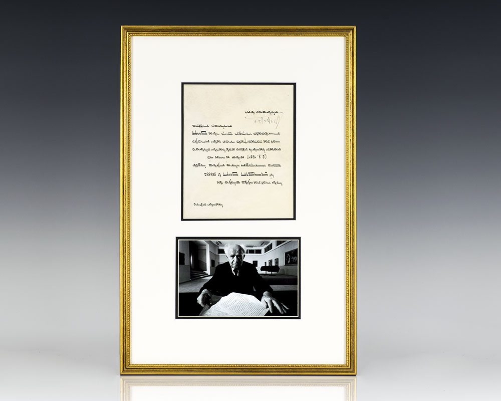 Signed Document from the first Prime Minister of Israel David Ben Gurion. “State of Israel We sadly commemorate the memory of 566552 private Chaim Chobra, may his memory be blessed, who died in the line of duty on 24 of Adar A 5711 (March 2nd, 1951). The Israeli government, I[srael] D[efense] F[orce] and the Hebrew nationContinue reading "David Ben-Gurion Signed Document Honoring the Loss of an Israeli Soldier."