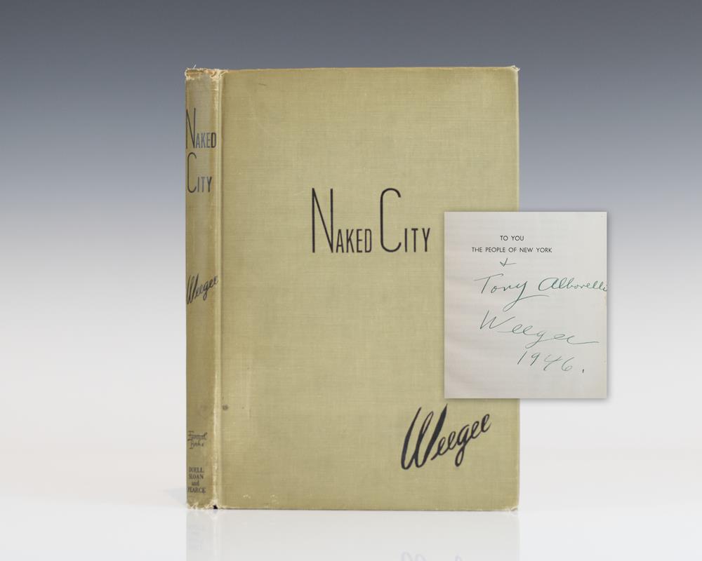 First edition of this classic photography book. Octavo, original cloth, illustrated. Inscribed and dated in 1946 by Weegee. An excellent tight example that shows some rubbing and wear.