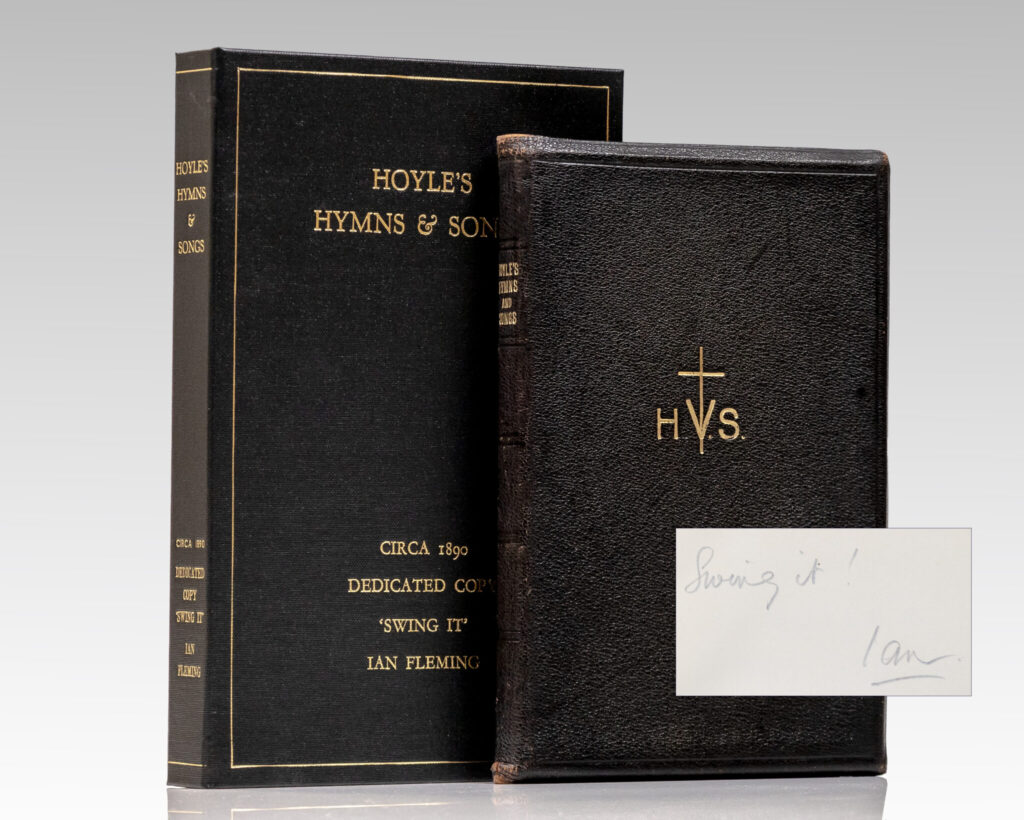 Early edition of this collection of hymns, inscribed by legendary creator of 007 Ian Fleming. Octavo, bound in the original full black morocco with gilt titles to the spine in six compartments within stamped-in-blind bands, yapp edges, all edges gilt, silk ribbon bound in, illustrated with hymn stanzas. Boldly signed by Ian Fleming in pencilContinue reading "Hoyle’s Hymns and Songs: For Temperance Societies & Bands of Hope."