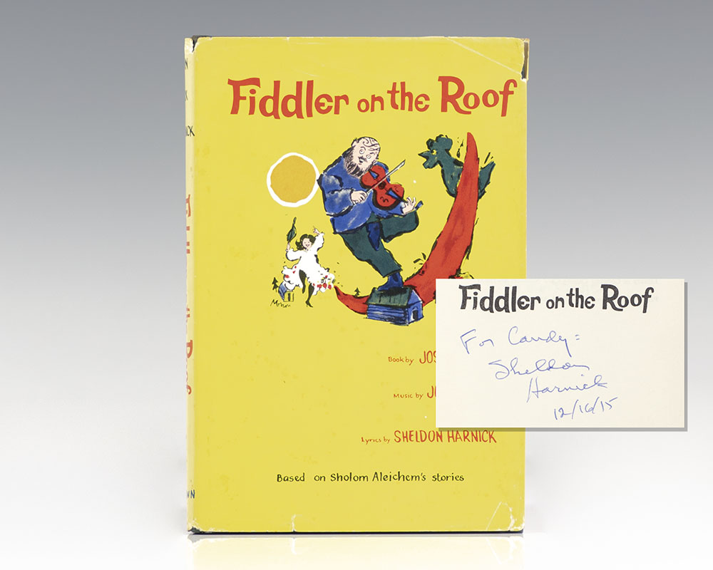 First edition of this classic work. Octavo, original cloth, illustrated. Presentation copy, inscribed by the lyricist Sheldon Harnick on the title page, “For Candy: Sheldon Harnick 12/16/15.” Near fine in a near fine price-clipped dust jacket, small name to the front free endpaper. Jacket drawing by Tom Morrow. An exceptional signed example.