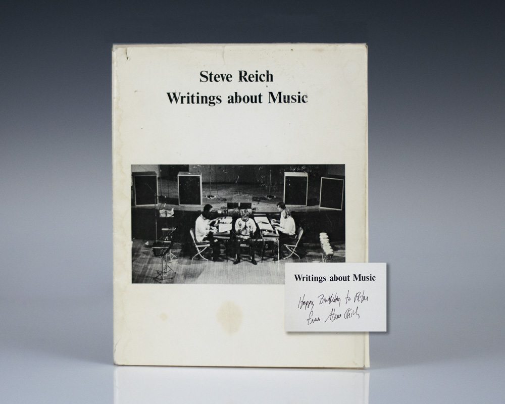 First edition, third issue of this classic work. Octavo, wrappers. Presentation copy, inscribed by the author on the title page, “Happy Birthday to Peter from Steve Reich.” Dampstaining to the lower part of the text, otherwise an excellent example in the original dust jacket.