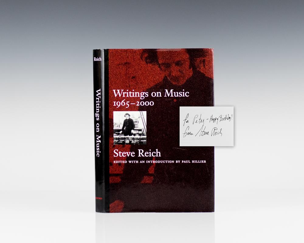 First edition of Reich’s collection of music from 1965-2000. Octavo, original boards. Presentation copy, inscribed by the author, “For Peter Happy Birthday! Steve Reich.” Fine in a fine dust jacket. Edited by Paul Hillier.