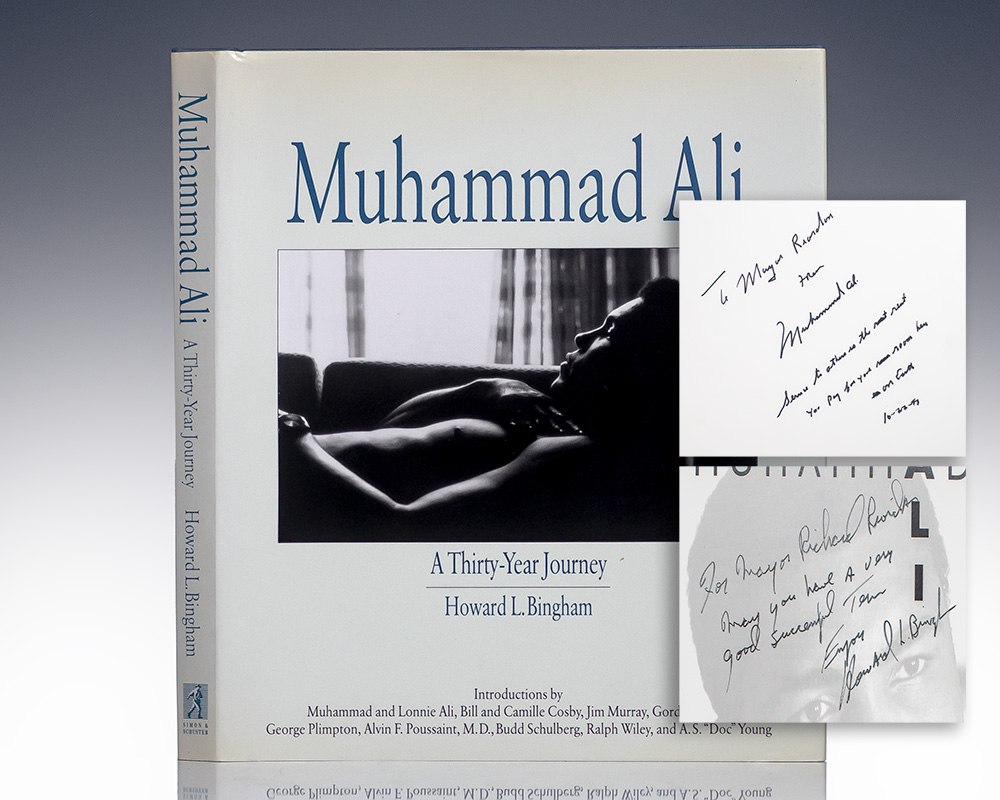 First edition of this photographic record of Muhammad Ali’s career. Quarto, original cloth, illustrated with numerous photographs by Howard L. Bingham of or concerning Muhammad Ali. Inscribed on the page preceding title page, “To Mayor Riordan from Muhammad Ali, Service to others is the rent you pay for your room here on earth. 10-23-93.”  SignedContinue reading "Muhammad Ali: A Thirty-Year Journey."