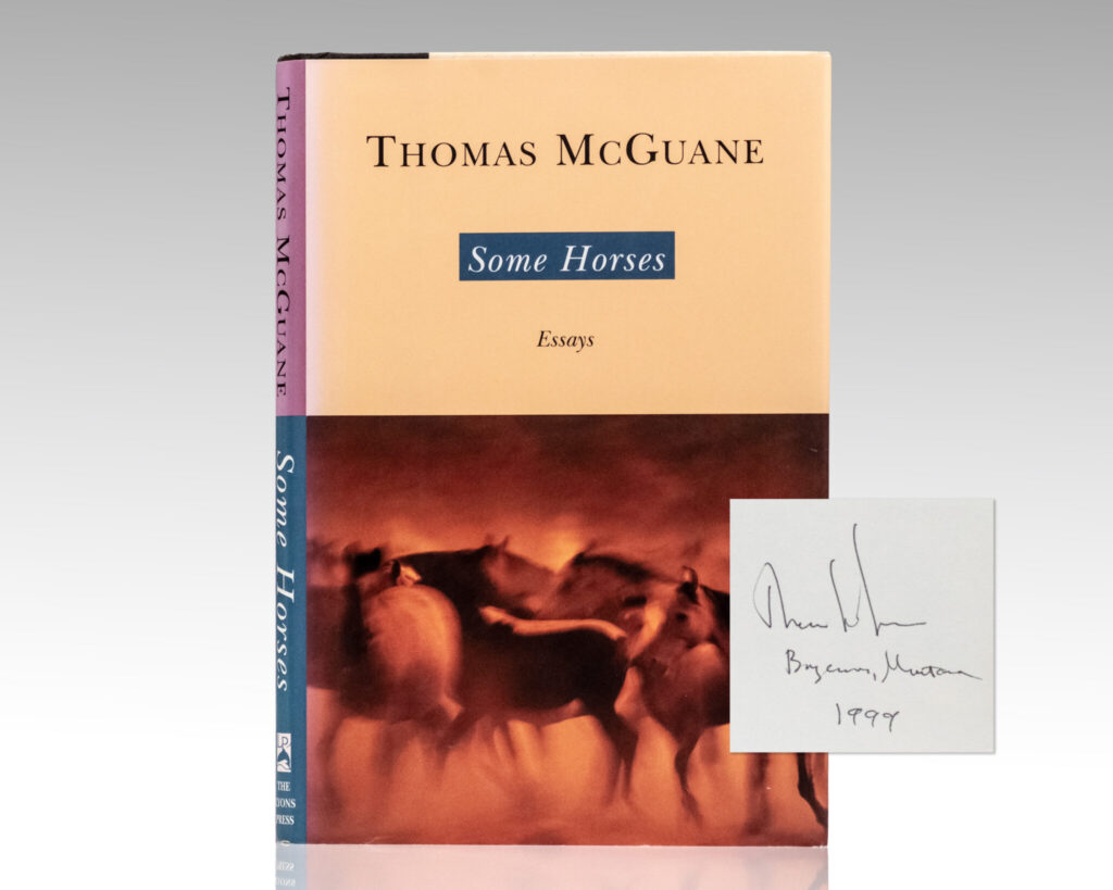 First edition of this American West literary collection of essays. Octavo, original publisher’s half cloth, illustrated with black and white sketches. Boldly signed in the year of publication on the half-title page “Thomas McGuane Montana 1999.” Fine in a fine dust jacket. Jacket design by John Gray. Author photograph by Kurt Markus.