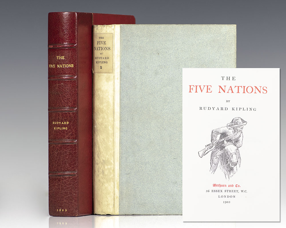 Large paper edition of Kipling’s notable poetry collection. Large octavo, original quarter parchment over paper-covered boards. One of 200 copies on handmade paper. In fine condition. Housed in a custom half morocco and chemise case.