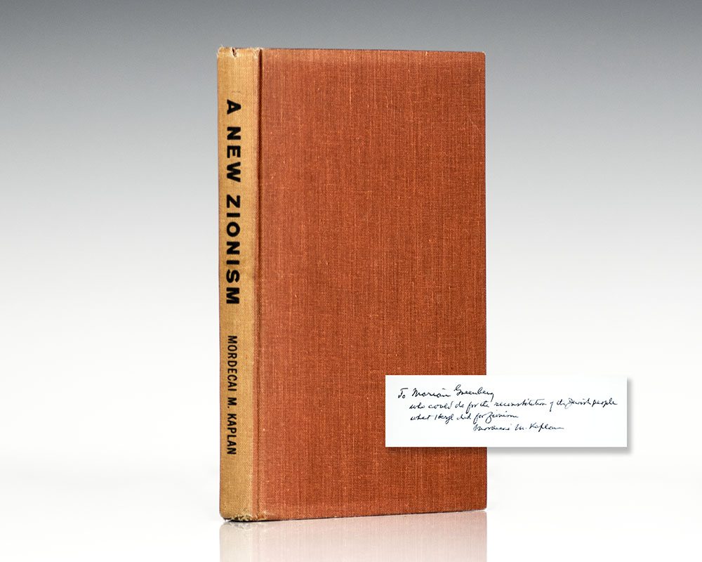 Second enlarged edition. Octavo, original cloth. Lengthily Inscribed by Mordecai Kaplan to a noted Zionist on the half-title page. In near fine condition.