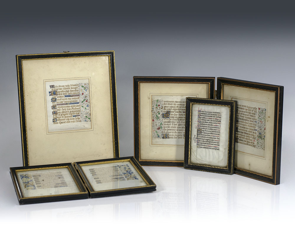 Rare illuminated leaf from a German Medieval Book of Hours. One page, text in Latin, elaborately engraved with an illuminated border, the image depicts a scene from the book of Samuel in which David offers a sacrifice to God in an attempt to end plague on Israel. In fine condition. Matted and framed. The entireContinue reading "Illuminated Medieval Book of Hours Leaf."