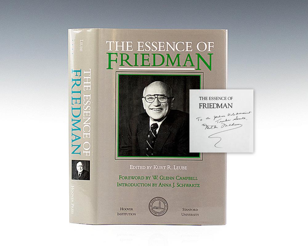 First edition of this work by the Nobel Prize-winning economist on monetary history. Octavo, original half cloth. Presentation copy, inscribed by the author, “For Alan, some bedtime reading, Best regards Milton.” Fine in a fine dust jacket. Housed in a custom half morocco clamshell box.