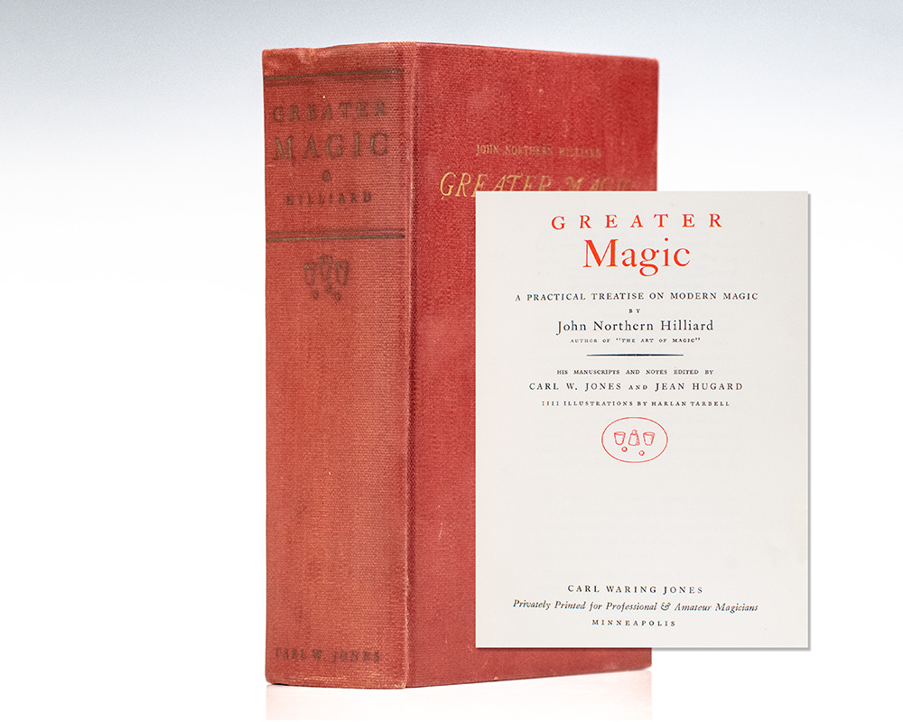 First edition, second printing of this landmark compendium of modern magic. Thick octavo, original publisher’s cloth with gilt titles to the spine and front panel, gilt vignette to the front panel, with 1,111 illustrations. In near fine condition. His manuscripts and notes edited by Carl W. Jones and Jean Hugard. Illustrated by Harlan Tarbell.