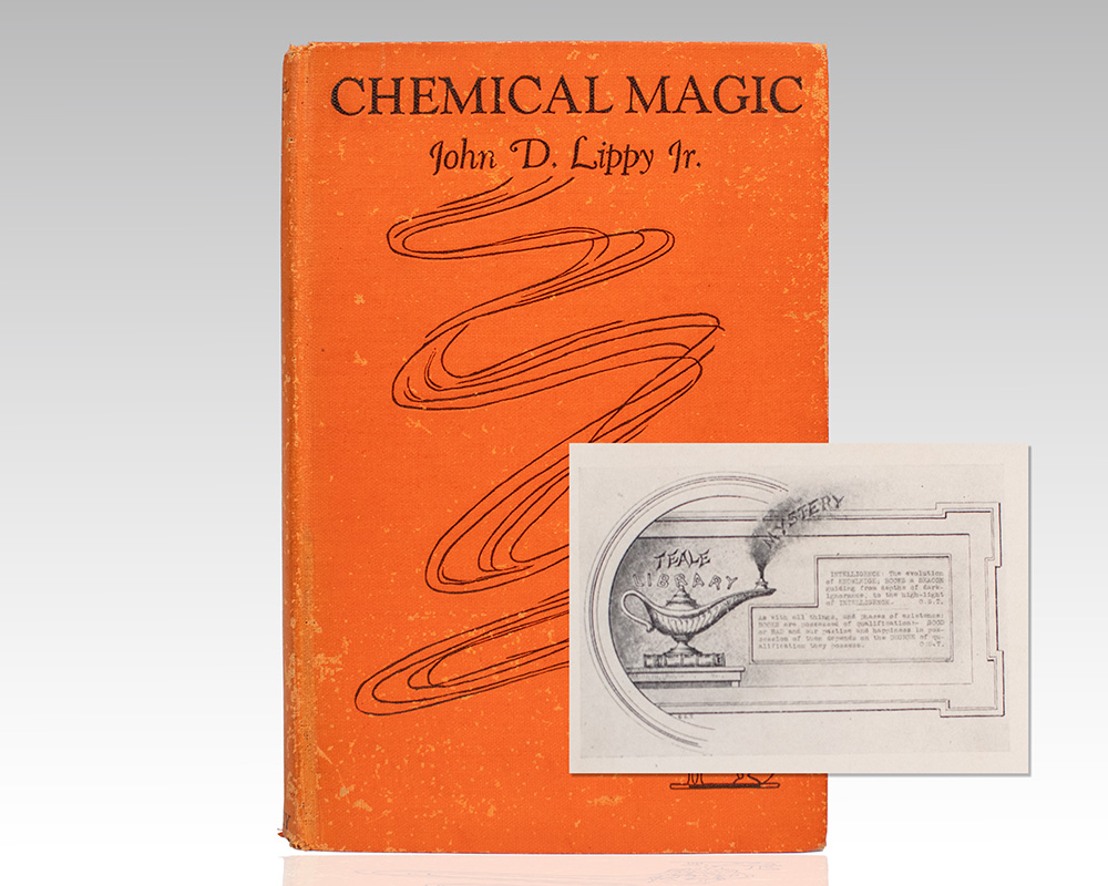 First edition of this specialized instructional work. Octavo, original publisher’s pictorial cloth, top stain orange, frontispiece, illustrated with photographs and diagrams. From the collection of magician Oscar Teale with his book plate to the front pastedown. Oscar Teale was a magician, lecturer, and historian of magic whose work bridged performance, scholarship, and the preservation ofContinue reading "Chemical Magic."