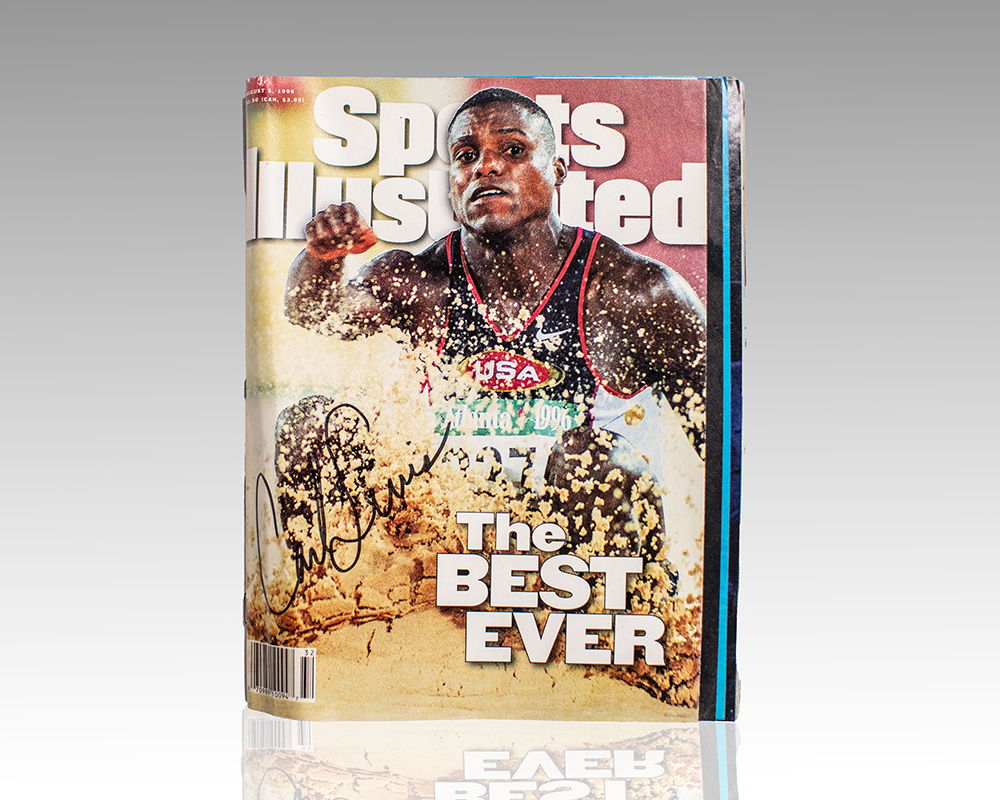 1986-87 Fleer #57 Michael Jordan card picturing Jordan in his Chicago Bulls uniform and with a basketball in hand. Boldly signed by Jordan in blue felt tip. Authenticated and graded a perfect “10” by Beckett Authentication Services for the autograph. Housed in a hard plastic case with Beckett Authentic aftermarket sticker #00018584993. In fine condition.