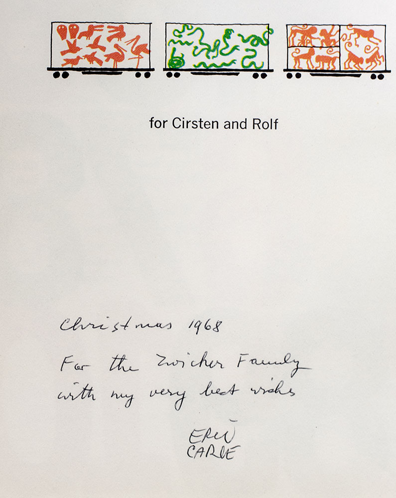 First edition of this classic work, the artists' first solely authored and original picture book. Thin quarto, original cloth, illustrated endpapers. Presentation copy, inscribed by the author in the year of publication opposite the title page, "Christmas 1968 For the Zwicker Family with my very best wishes Eric Carle." Fine in a very good price-clipped dust jacket. First editions are rare, especially signed.