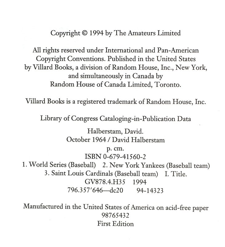 "Superb reporting...Incisive analysis...You know from the start that Halberstam is going to focus on a large human canvas...One of the many joys of this book is the humanity with which Halberstam explores the characters as well as the talents of the players, coaches and managers. These are not demigods of summer but flawed, believable human beings who on occasion can rise to peaks of heroism" (Chicago Sun-Times)