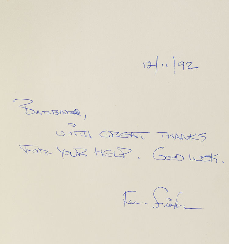 First edition of American investment analyst Kenneth L. Fisher's complete guide to the greatest minds in investment. Octavo, original cloth gilt. Presentation copy, inscribed by the author prior to publication on the front free endpaper, "12/11/92 Barbara, With great thanks for your help. Good luck. Ken Fisher." Near fine in a near fine dust jacket. Jacket design by David Mueller.