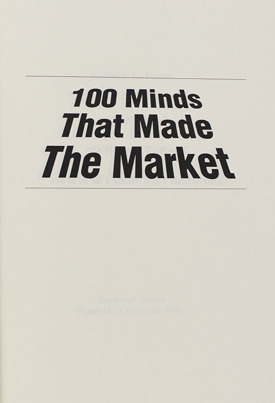 "The 100 subjects I've chosen are fascinating, wacky, wild and often just weird - yet there are powerful and at times very funny": First edition of Kenneth Fisher's 100 Minds That Made The Market; Inscribed by him prior to publication