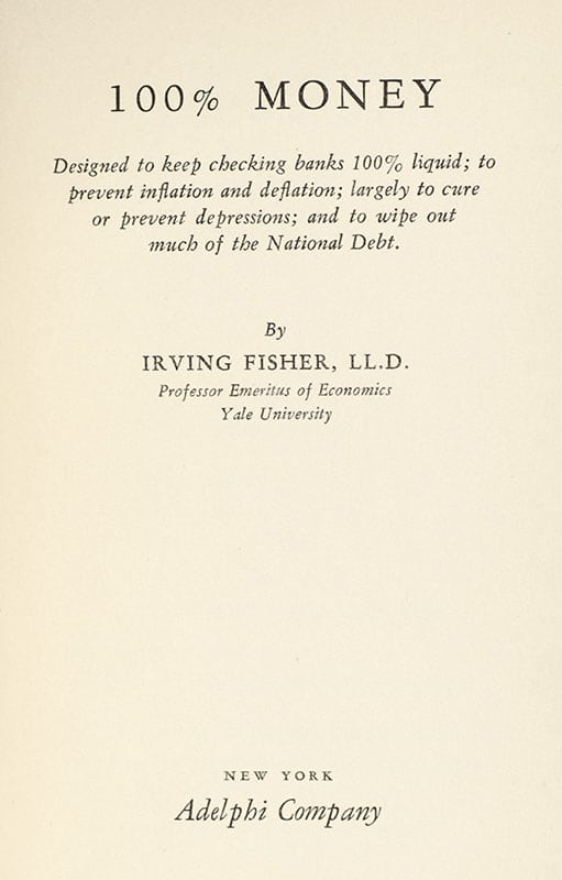 “THE BEST PROPOSAL EVER OFFERED FOR SPEEDILY AND PERMANENTLY SOLVING THE PROBLEM OF DEPRESSIONS”: IRVING FISHER'S OF 100% MONEY; INSCRIBED BY HIM