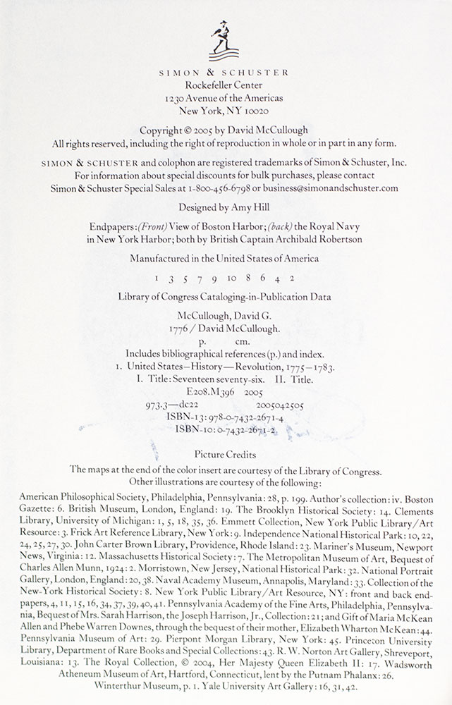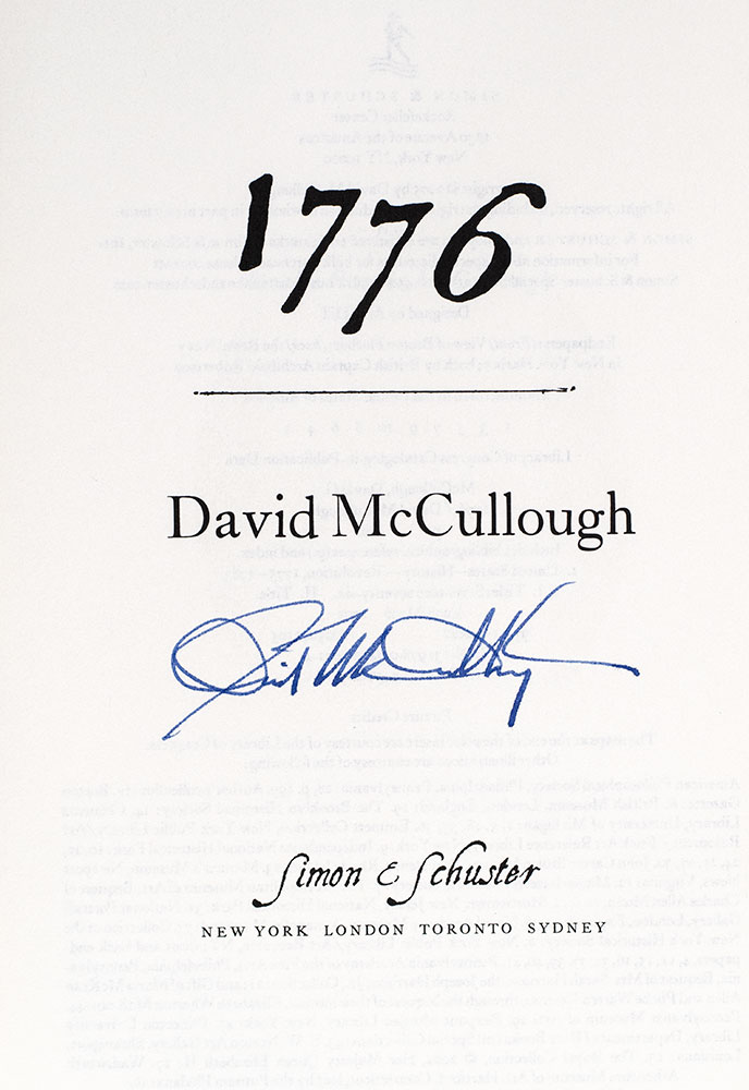 “THERE ARE NO PEOPLE ON EARTH IN WHOM A SPIRIT OF ENTHUSIASTIC ZEAL IS SO READILY KINDLED, AND BURNS SO REMARKABLY, AS AMERICANS”: FIRST EDITION OF DAVID MCCULLOUGH'S 1776; SIGNED BY HIM