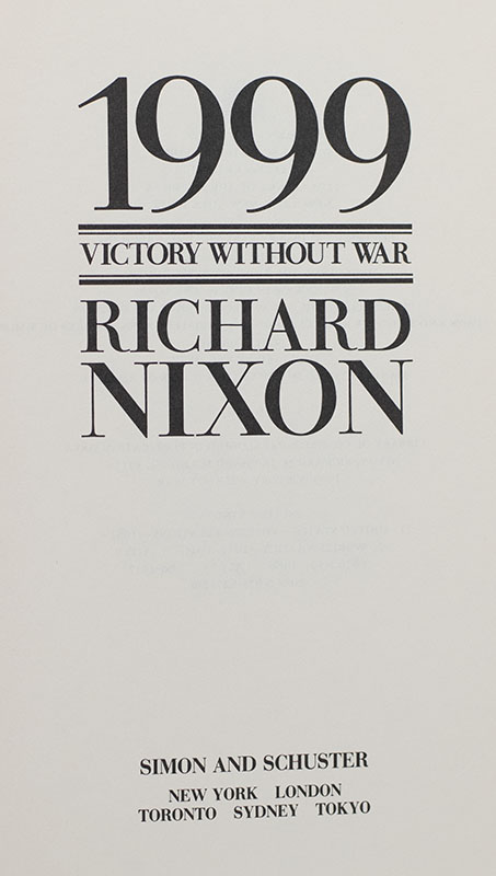 "In 1999, we will remember the twentieth century as the bloodiest and the best in the history of man": Richard Nixon's 1999: Victory Without War; Inscribed by Him
