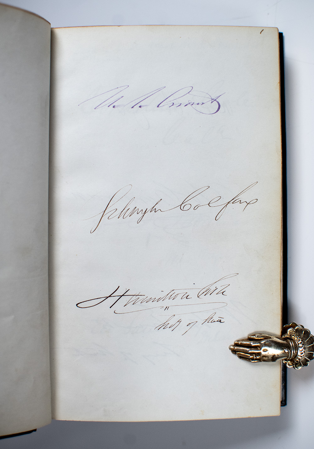Rare and remarkable 19th-Century Autograph Album containing the autographs of 289 politicians; among them seven presidents including Ulysses S. Grant, Theodore Roosevelt, and William McKinley