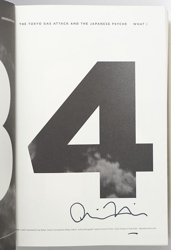 “I'M A VERY ORDINARY HUMAN BEING; I JUST HAPPEN TO LIKE READING BOOKS”: FIRST EDITION OF 1Q84; SIGNED BY THREE TIMES BY ILLUSTRATOR CHIP KIDD