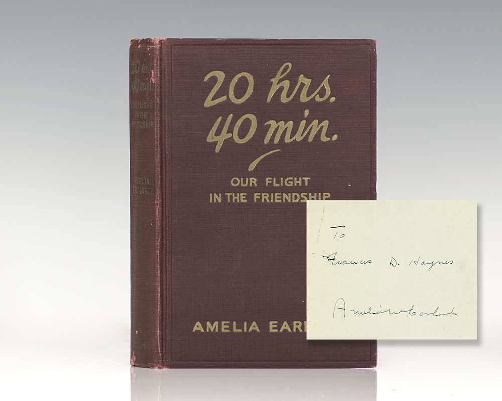 “Everyone has ocean’s to fly, if they have the heart to do it. Is it reckless? Maybe. But what do dreams know of boundaries?”: Amelia Earhart's 20Hrs. 40 Min. Our Flight In Friendship; Inscribed by Her
