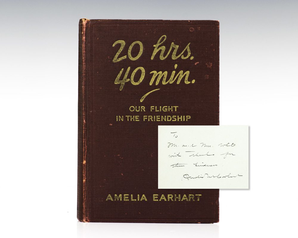 First edition, second printing, published the same year as the first. Octavo, original cloth. Inscribed by the author on the half title page, "To Mr. and Mrs. White with thanks for their kindness Amelia Earhart."Also included as an autographed letter signed by Amelia Earhart to the same recipient dated 14 March 1929 to Mrs. White, "thanking her for hosting the pilot while in Texas, sending this book, and mentioning that she is still enjoying the fresh gladiolas and sweet peas."  In very good condition with light rubbing. A warm inscription.