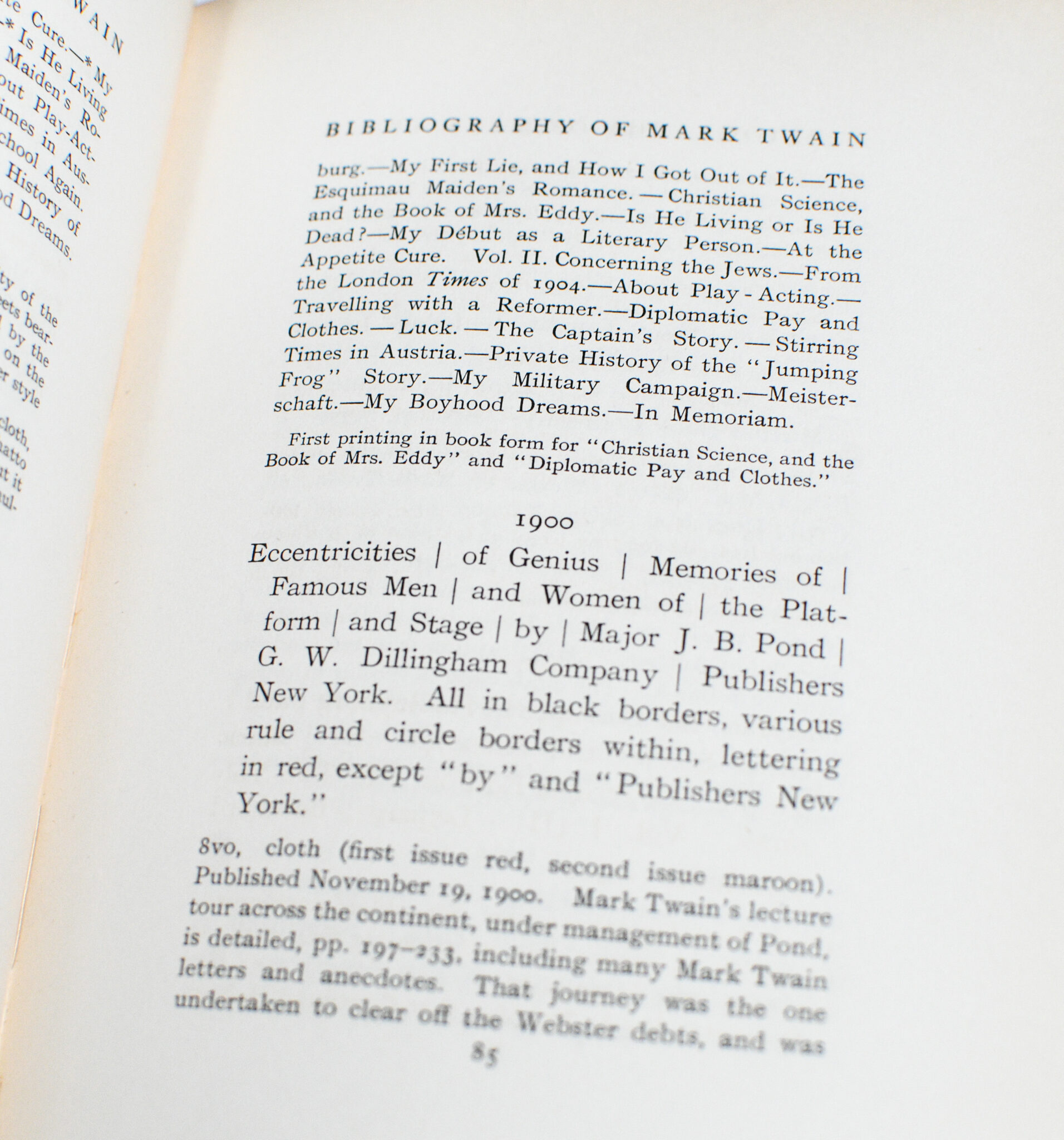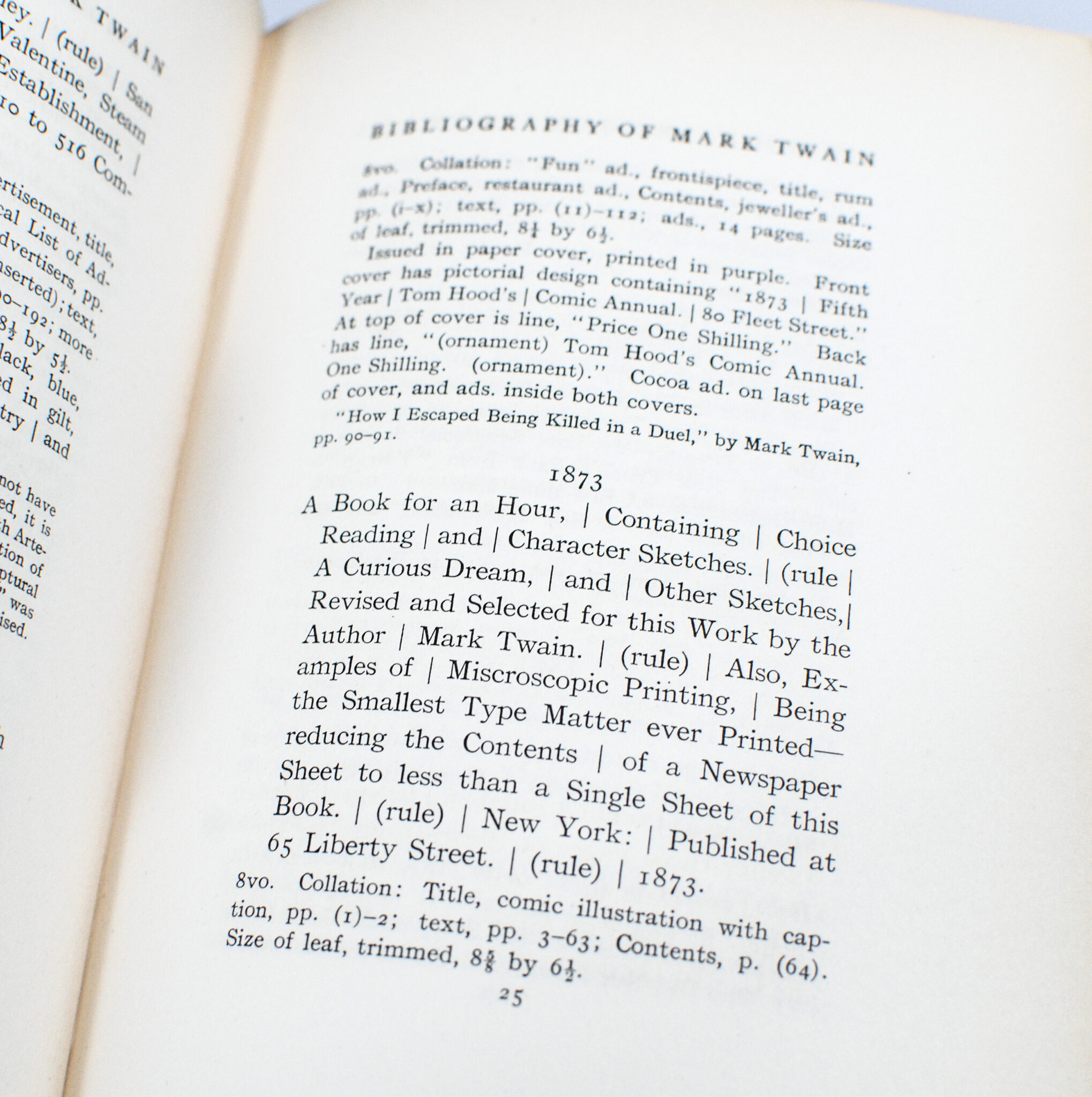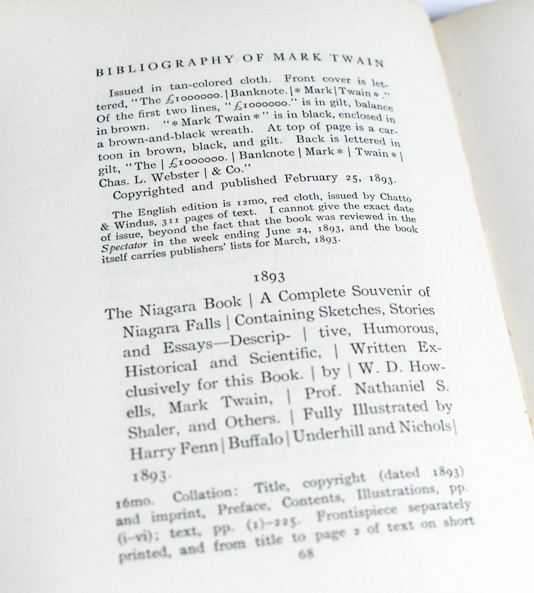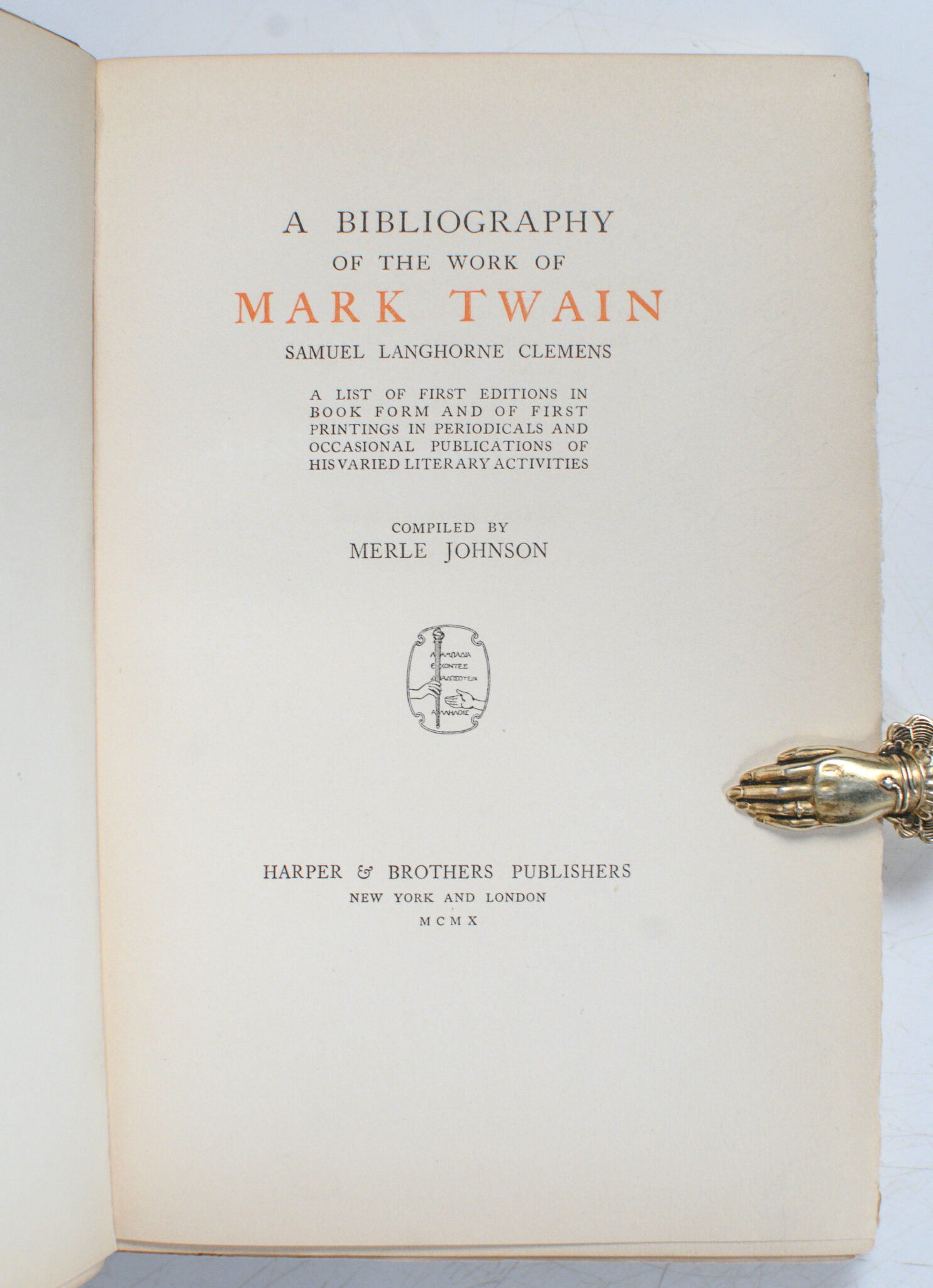 First Limited Edition of A Bibliography of the Work of Mark Twain; Signed by Compiler Merle Johnson and the Publisher