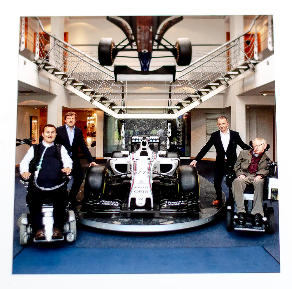 Later printing of Hawking’s groundbreaking work. Octavo, original cloth, illustrated by Ron Miller. Association copy, inscribed by Jane Hawking on the title page, "For Frank Williams, in admiration Jane" and signed by Stephen Hawking with his thumbprint. The recipient, Sir Francis Owen Garbett Williams was a British businessman, racing car driver, and the founder of the Williams Formula One team. He was the team principal from its foundation in 1977 until 2020. During that period, the team won nine constructors' championships and seven drivers' championships. Hawking was a loyal supporter and fan of the Williams Formula One team. He visited the Williams team factory and watched races from the Williams pit on several occasions. Near fine in a very good dust jacket. Author photograph by David Gamble. With a collection of photographs of Williams and Hawking laid in as well as a letter of provenance signed by Joss. A. Cheli.